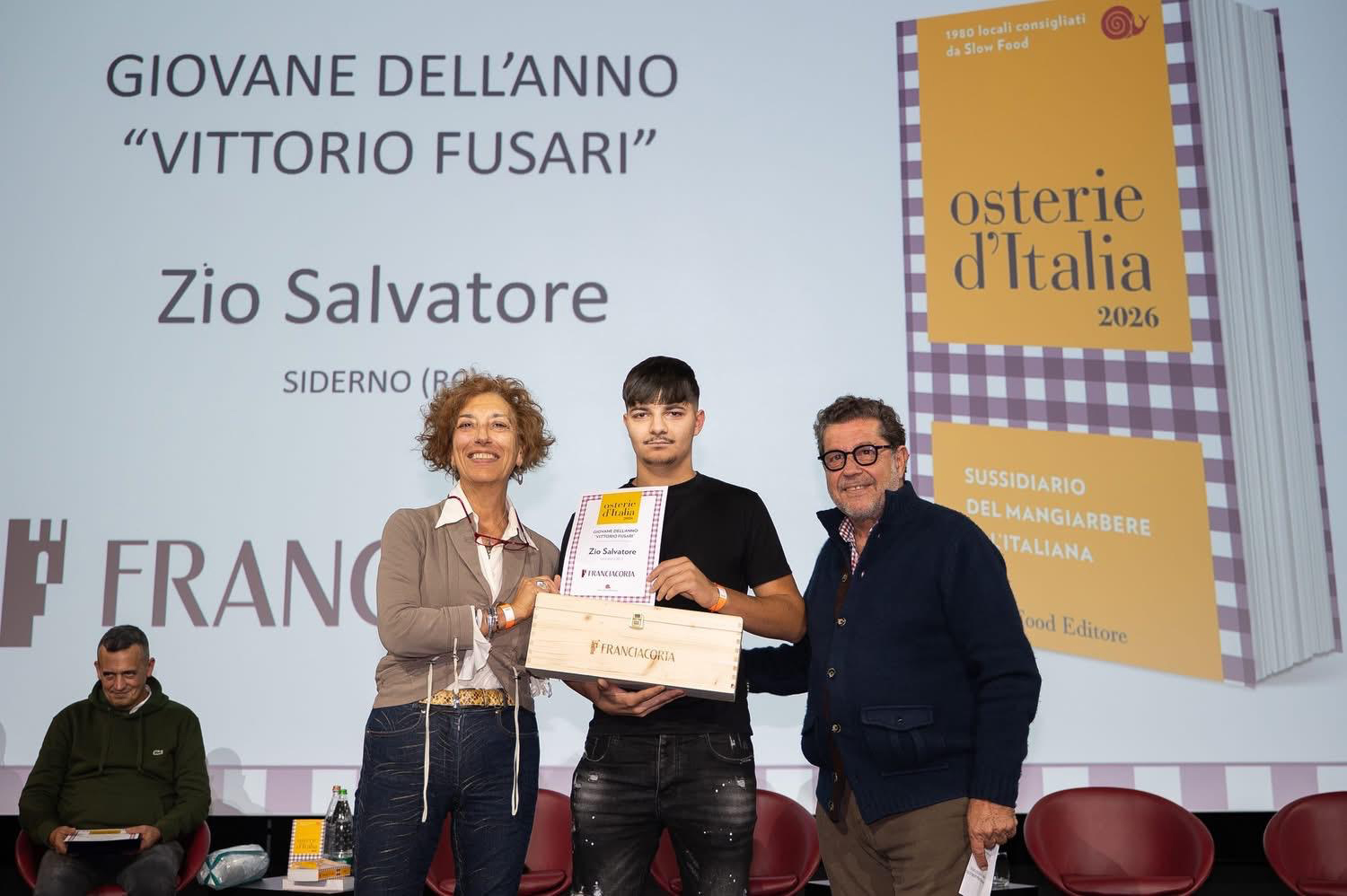 A riprova della dinamicità e della visione evoluta della cucina territoriale, il premio “Giovane dell’anno” è stato assegnato a Giuseppe Fragomeni dell’osteria Zio Salvatore di Siderno Superiore. «Per la determinazione nel tornare a casa e portare una visione. Un cuoco di 22 anni – è scritto nella menzione – che fa del suo retaggio culturale la misura innovativa di un ritorno alla terra attraverso l’osteria: la sua terra e quella della sua famiglia, il suo paese e la voglia di vederlo vivo, popolato e stimolante. L’osteria può cambiare vite e interi borghi».